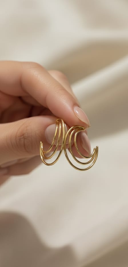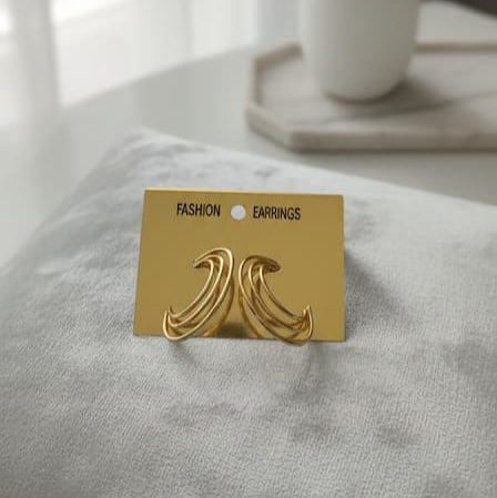 These stunning golden earrings are crafted to perfection, combining timeless elegance with a touch of modern sophistication. Designed with a smooth, polished finish, they shine brilliantly under any light, making them the perfect accessory for both everyday wear and special occasions.